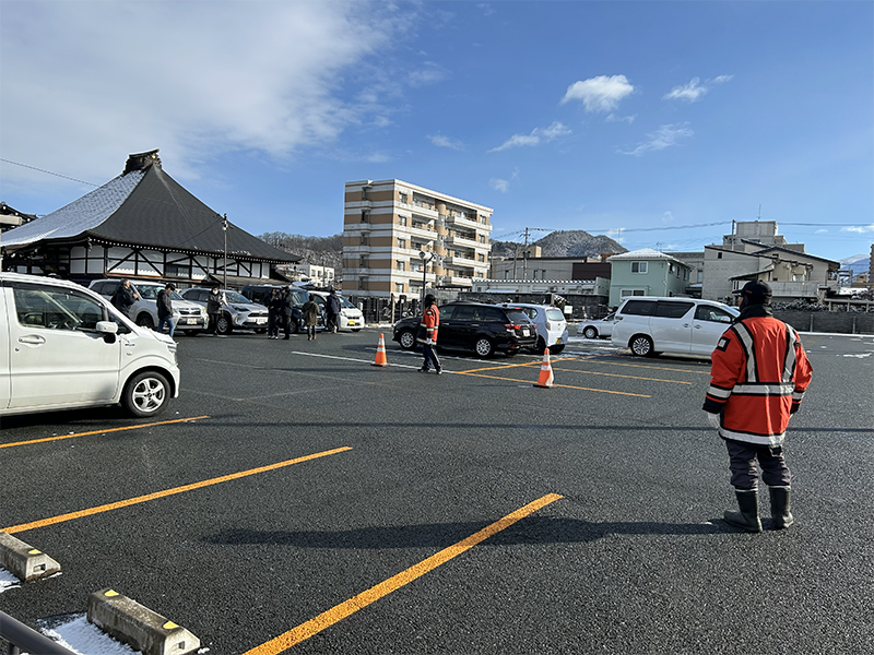 正願寺の駐車場には、朝から次々と参拝者の皆様のお車が入り、今年も太陽警備保障のガードマンの方々が、丁寧に参拝者のご案内をしてくださいました。